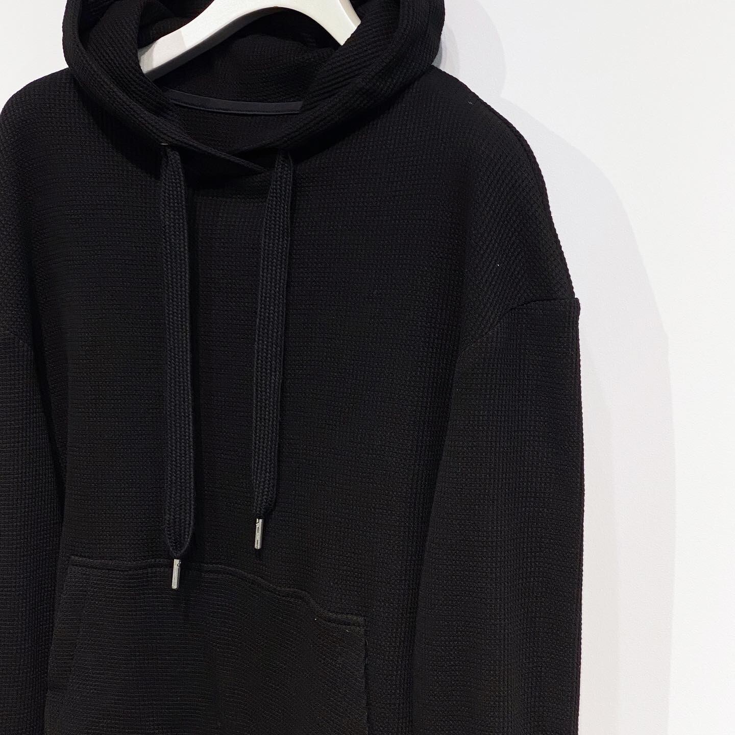 lore11 ワッフル切替フーディー size : Free 着丈70cm、肩幅55cm、袖丈51.5cm col : オフホワイト、ブラック mat : ポリエステル96%、ポリウレタン4% 【別布】ナイロン55%、ポリエステル45% カジュアルなワッフル素材のフーディーに、同色系でハリのあるタフタ素材をドッキングしたデザイントップス。 裾のアジャストでウエストの絞りを調節できるので、ゆったりとして着膨れしがちなシルエットもすっきりとした印象に。